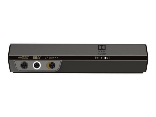 The CREATIVE Sound BlasterX G6 External Audio Card was designed for audio enthusiasts who demand top quality sound from their digital life. It is aimed at gamers and audio professionals who seek enhanced listening experiences whether they are playing games, listening to music or watching movies.